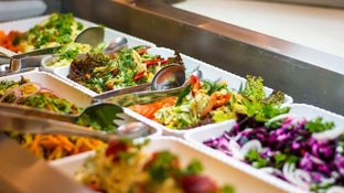 Please note that the Salad Bar, Deli Bar, Dessert Station, Dressings & Toppings, and Waffle Bar & Hydration Station are only available during buffet meals.